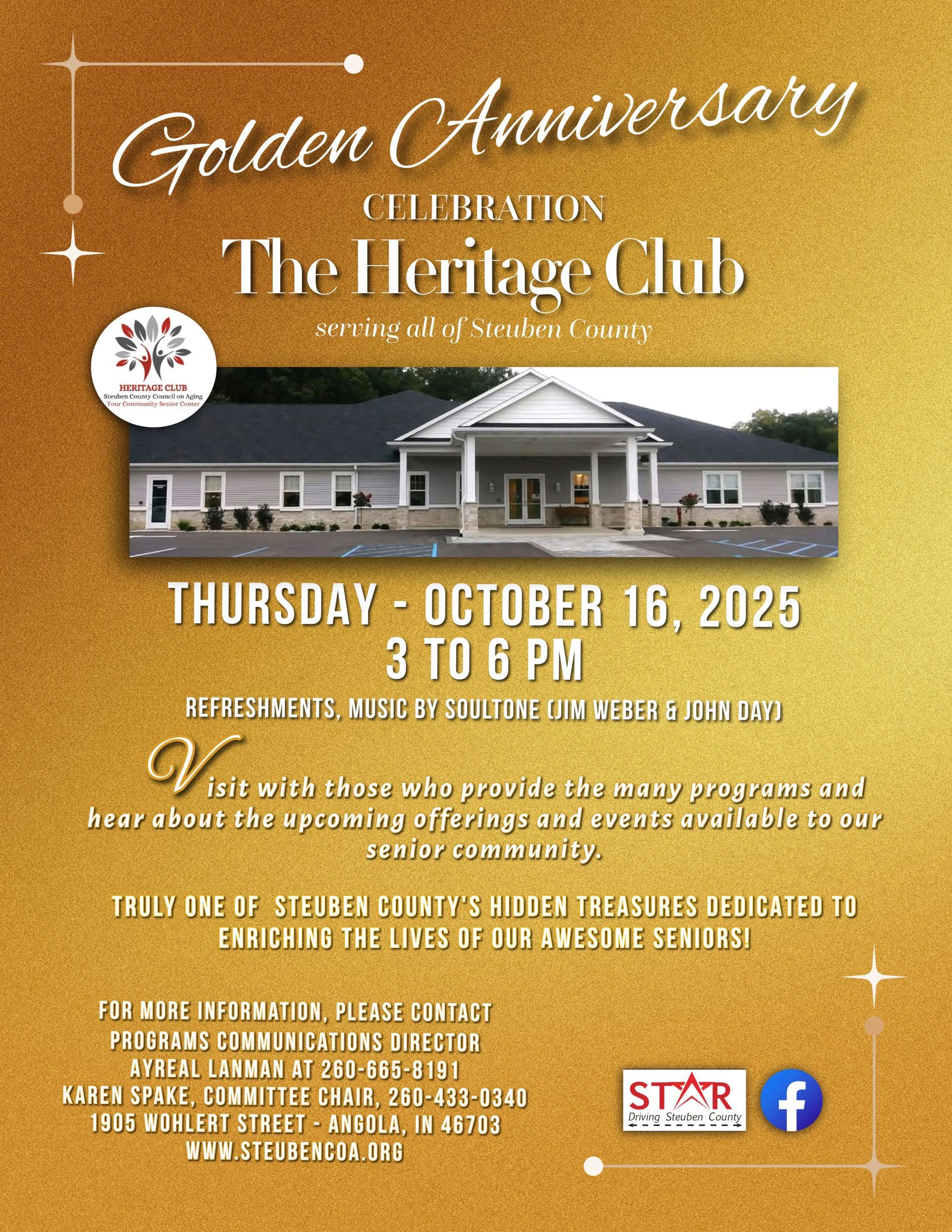 On October 16, 2025, The Heritage Club proudly celebrated its Golden Anniversary—50 years of enriching the lives of seniors in Steuben County. This milestone event brought together community members, partners, and friends for an afternoon filled with music, memories, and meaningful connections.